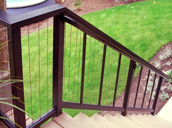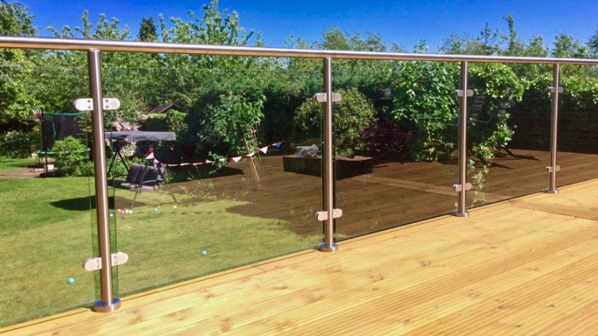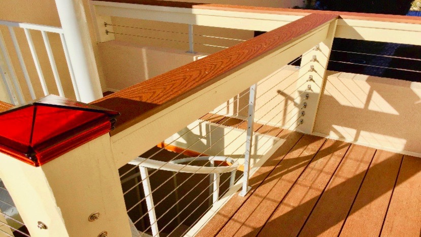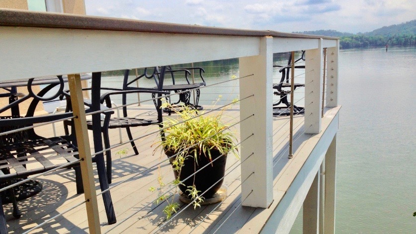 Another railing system for the highest visibility is glass. Glass railing systems maximizes your porch view. Glass railing also has great functionality. It works very well to safely keep kids and pets on the deck, allowing them to enjoy the great view as well. The glass is manufactured from a high strength tempered glass. This ensures your glass deck railing will be very strong and impact resistant. Another feature that solid glass railing offer is it’s wind-breaking ability. This can be great if you have a lot of wind coming off the lake for instance. This glass railing system offers a little more design element to it as well as allowing better airflow around the deck.