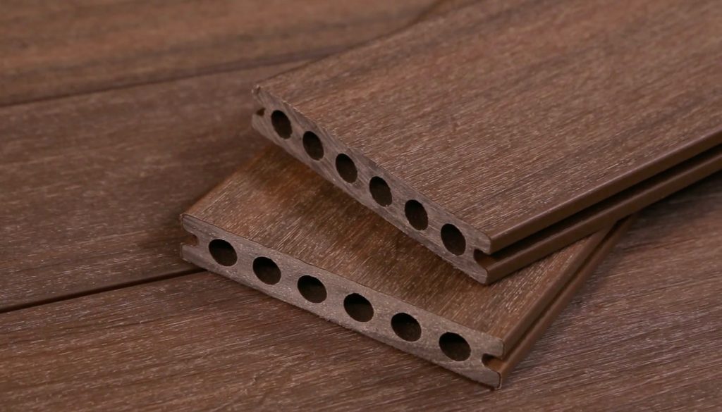 The next type is a hybrid composite bamboo deck board that is made up of 60% reclaimed bamboo fibers and 40% recycled HDPE plastics. So it is a really great product in function and it’s great for the environment too. It offers low maintenance for long deck life. With this style of bamboo composite deck board, you get the combined advantages of the strength of the bamboo fibers and the non-rot properties of the HDPE recycled plastic which bonds it all together. This product is low maintenance offering functionality and durability in one deck board. Composite bamboo decking also comes with a 25year warranty!