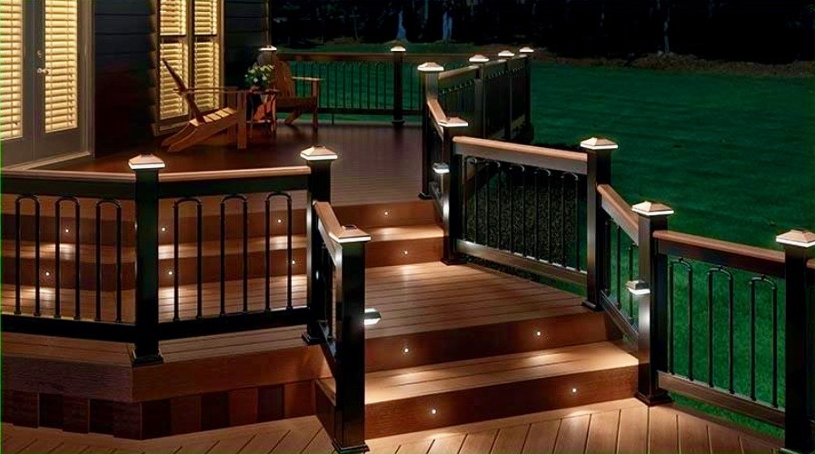Now if you really want to take your dream deck to the next level you have to add lightning. There are so many choices now with LED lighting, rope lighting and even fiber optic lighting! We would love to help guide you through the thousands of choices to find the perfect ambiance for your tailor made deck. Lighting really brings your deck to the next level. Just imagine setting the mood with the changing colors of the LED lights. Or just adding functionality of lighting up your stairs. Lighting which will give you and your guests safe, fun experience.